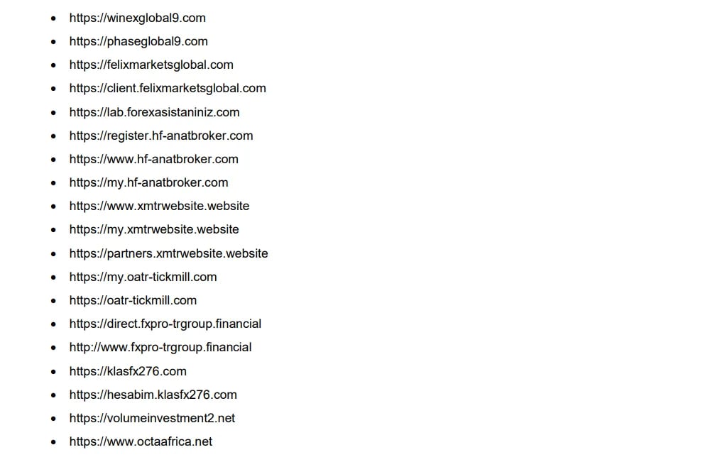 Ayrıca; 6362 sayılı Sermaye Piyasası Kanunu’nun (SPKn) 1 inci maddesi çerçevesinde yatırımcıların hak ve yararlarının korunmasını teminen, SPKn’nun 128/1-(a) maddesine dayanarak sermaye piyasalarında izinsiz olarak faaliyette bulunulmasının engellenmesi amacıyla; SPKn’nun 99/3 maddesi uyarınca aşağıda adresleri yer alan internet sitelerine erişimin engellenmesi için gerekli hukuki işlemlerin yapılmasına karar verildi.