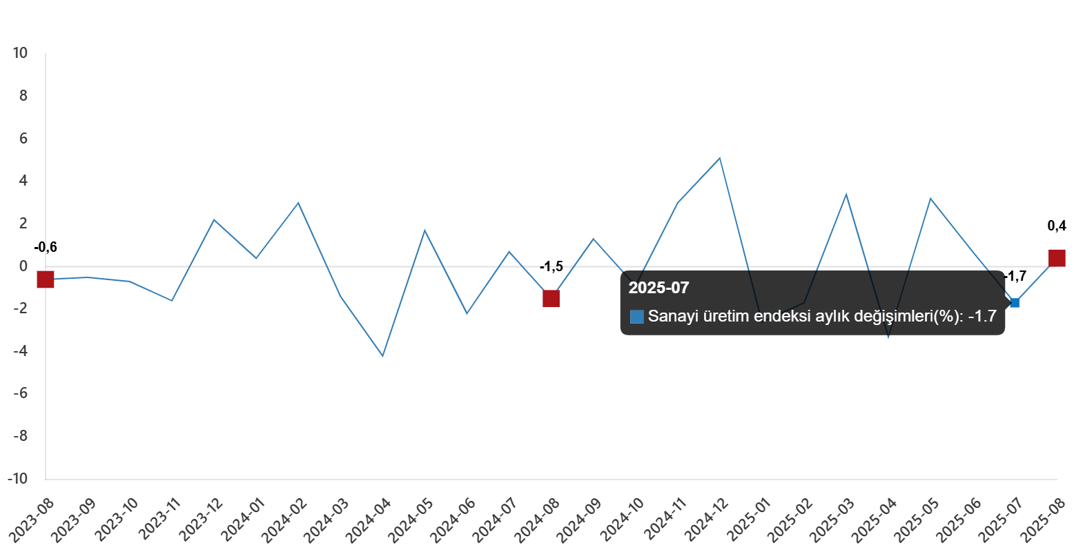 Sanayi üretim endeksi aylık değişimleri(%), Ağustos 2025